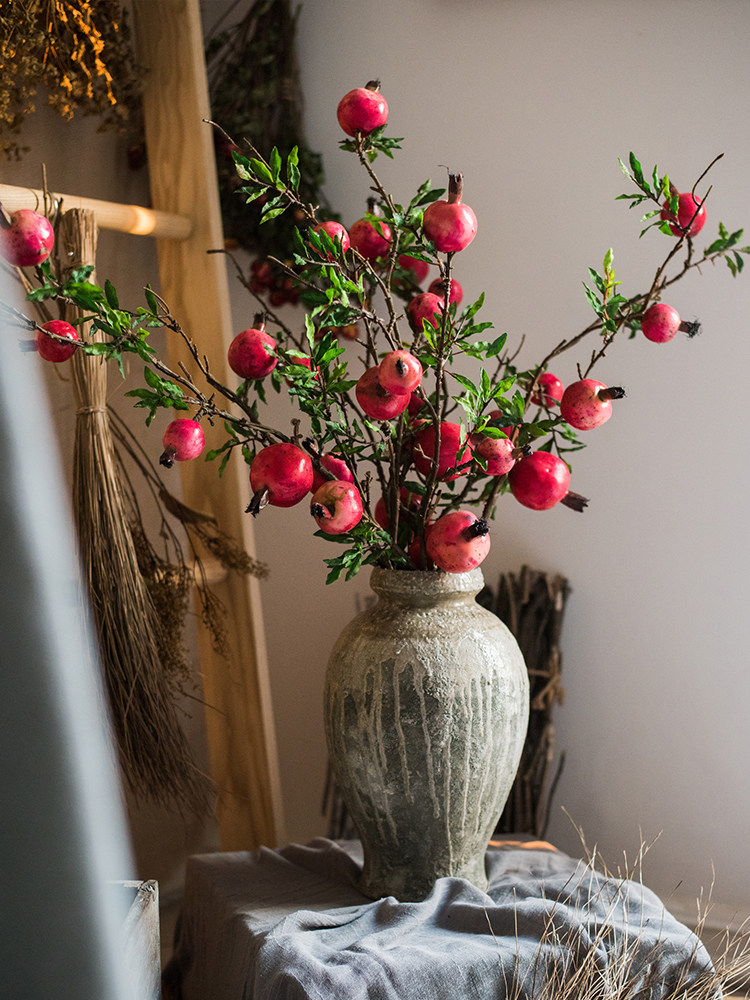 Simulation pomegranate branches flower arrangement artificial flower living room decoration silk flower artificial flower artificial pomegranate ornamentsQuantity: ten