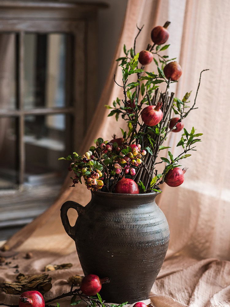 Simulation pomegranate branches flower arrangement artificial flower living room decoration silk flower artificial flower artificial pomegranate ornaments